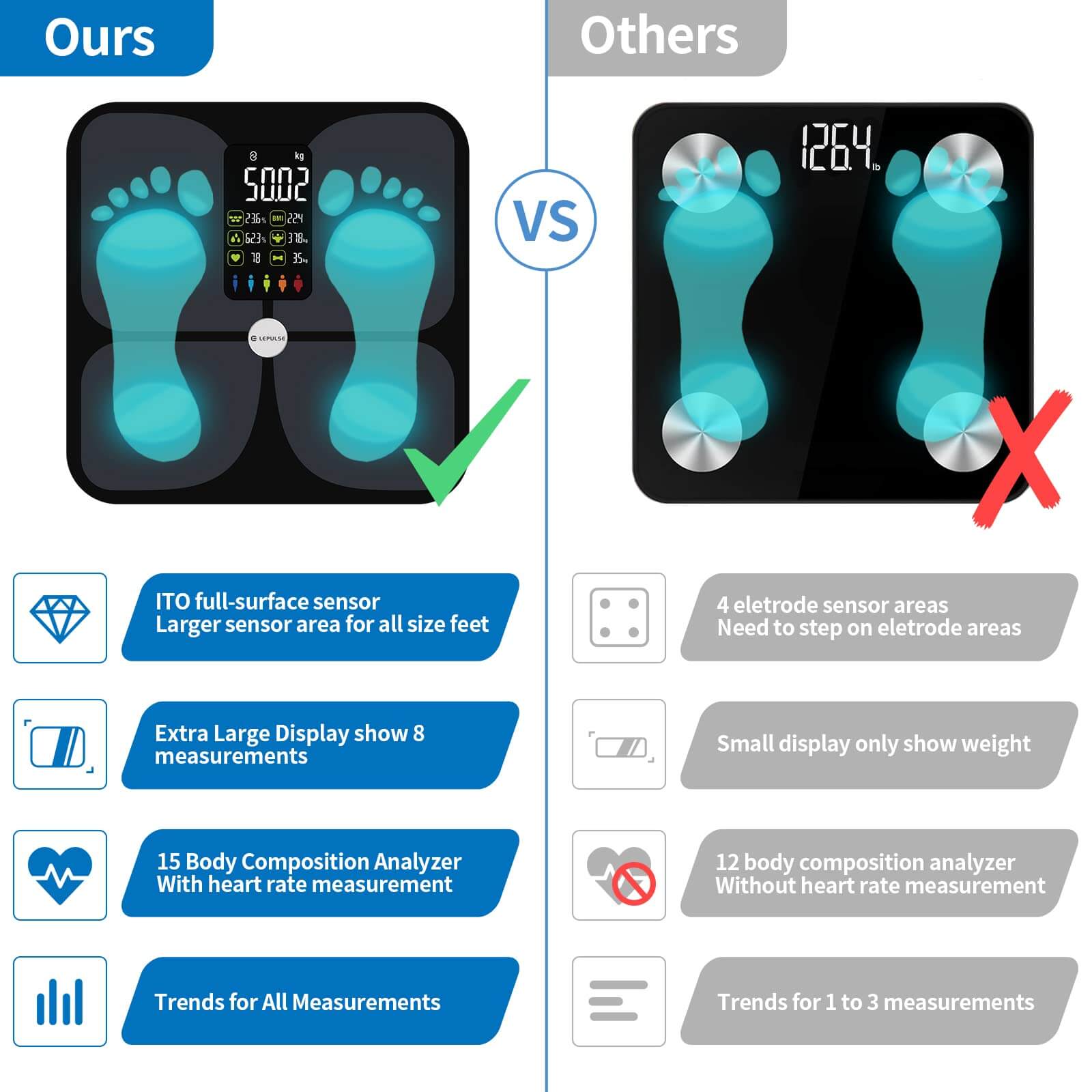 Minden lábmérethez illeszkedik. Más hagyományos mérlegekkel ellentétben a digitális súlymérlegeink fejlett ITO bevonattechnológiát alkalmaznak, amely lehetővé teszi a szabad mérést, és nem kell megbizonyosodnia arról, hogy mindkét lába az elektródákon van, sokkal nagyobb érzékelőterületet biztosít minden méretű láb számára, gyorsabb és gyorsabb pontos mérések.