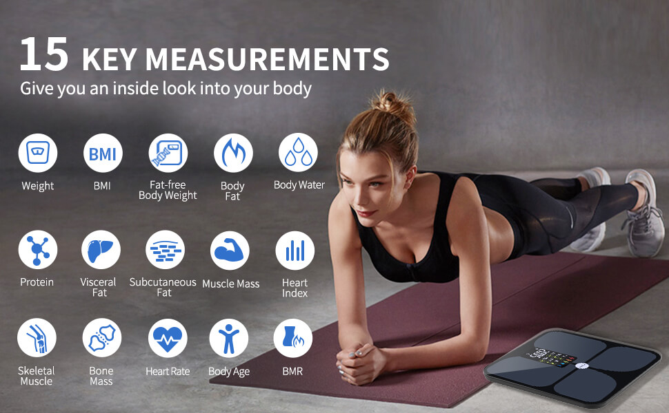A nagy fényerejű LCD kijelző lehetővé teszi az éjszakai mérést. A nagy méretű kijelző segítségével egy pillantással áttekintheti a mérési eredményt. Ez segít abban, hogy 6 alapvető mérése közvetlenül, beleértve a testzsírt, a BMI-t, a vizet, az izomtömeget, a pulzusszámot és a csonttömeget, hogyan segít egy pillantással tisztán látni tested változásait.